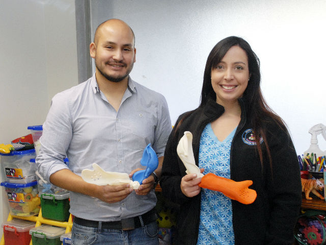 “Hasta ahora, los terapeutas ocupacionales hacemos las órtesis de forma manual, lo que requiere bastante tiempo, el uso de planchas de termoplástico que son más caras que los insumos que requiere la impresora y además tampoco quedaban demasiado exactas, entonces su ajuste no era perfecto en su totalidad. Ahora las podremos hacer más rápido –en uno o dos días-, de forma más económica y podremos dedicar mayor tiempo a la atención de pacientes”, dice la profesora Sáez. A ello, agrega que diversas fundaciones e institutos ya usan este tipo de tecnología para la confección de prótesis –es decir, que reemplazan la parte faltante- pero no para órtesis. “Y podemos hacer de cualquier tipo que se requiera, desde la más sencilla a la más compleja e incluyendo colores y dibujos personalizados a gusto del paciente. Por ejemplo, estamos haciendo para un paciente con ptosis palpebral bilateral –párpados caídos debido a una patología neuromuscular, que no se puede operar-, unos lentes especiales para sujetar sus párpados, y que están adornados con dibujos de los Transformers, que a él le encantan; eso ayuda a una mejor adhesión a los tratamientos. El de Cony tiene flores. Podemos diseñar lo que queramos”.