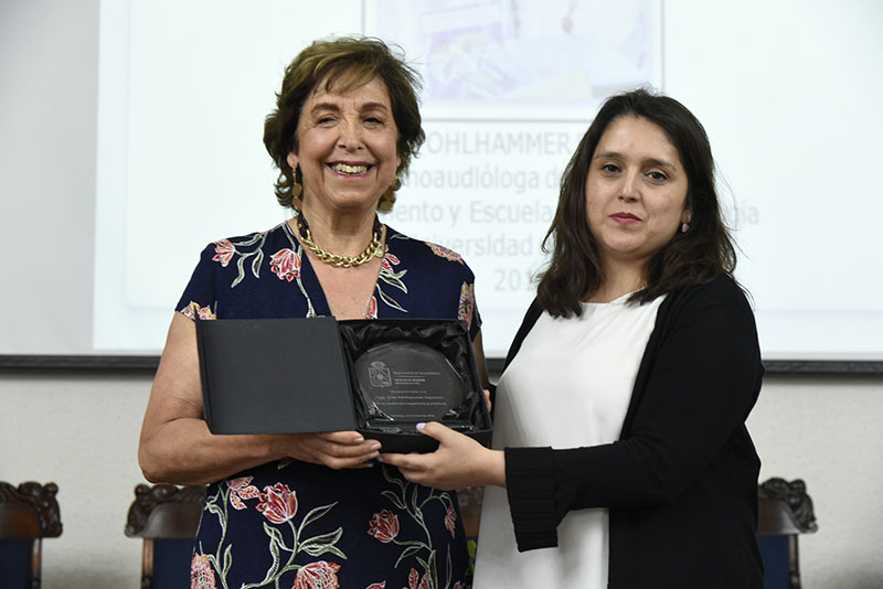 La académica apuntó además al trabajo realizado por la homenajeada en el archipiélago Juan Fernández sobre genética y trastornos específicos de lenguaje.