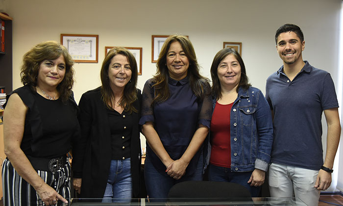 Erika Carreño, directora de la Escuela de Obstetricia; Lorena Binfa, Profesora titular del Departamento de Promoción de la Salud de la Mujer y el Recién Nacido; Socorro Mancía, directora de la Licenciatura en Salud Materno infantil de la U. de El Salvador; Marcela Díaz, directora del departamento; Pablo Gálvez, sudirector de la Escuela.