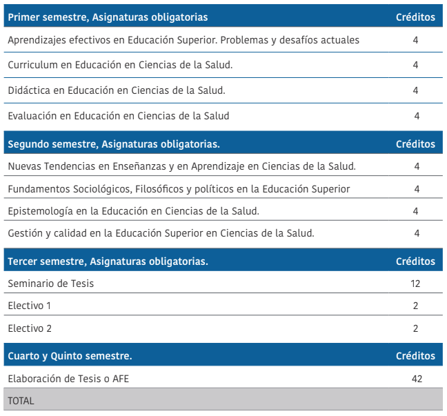 Está destinado a proveer a los docentes del campo de la salud las competencias necesarias para llevar a cabo una enseñanza de excelencia centrada en el estudiante, que incorpora el concepto de aseguramiento de la calidad. Es de orientación profesional y se imparte en modalidad presencial, destacando los siguientes objetivos: