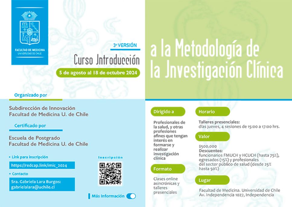 La investigación científica es esencial y universal, proporcionando herramientas valiosas para la sociedad. En el ámbito clínico, permite mejorar la calidad de vida a menor costo y riesgo. Integrar la investigación con la práctica asistencial capacita a los profesionales de la salud para observar y analizar problemas, investigando causas y proponiendo soluciones basadas en evidencia científica. Este curso tiene como objetivo introducir la metodología de investigación clínica, fomentando la observación y el análisis sistemáticos. Busca generar ideas de investigación basadas en necesidades profesionales, promoviendo la generación de conocimiento relevante. Dirigido a quienes desean iniciarse o profundizar en la investigación clínica, se espera que impulse el desarrollo de esta disciplina tanto dentro como fuera de la Facultad de Medicina de la Universidad de Chile y sus campos clínicos asociados.
