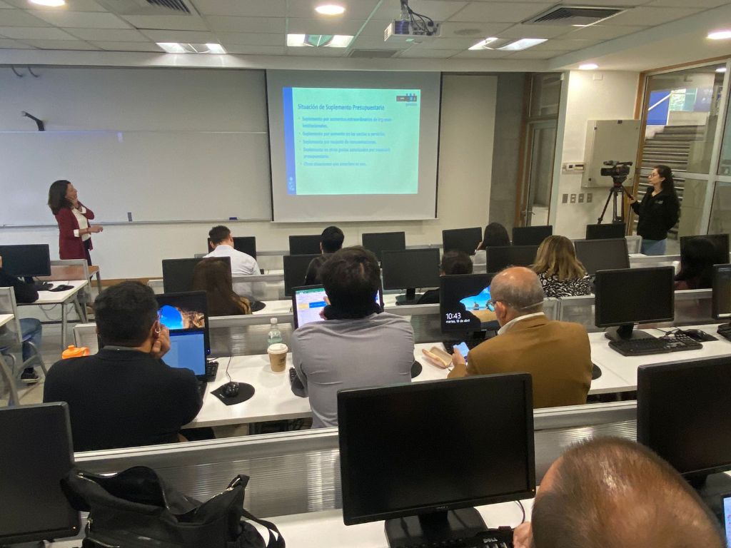 - Edith González, key user o usuaria clave del módulo de Presupuesto (PSM), fue la encargada de guiar la primera sesión práctica de las capacitaciones del mes de mayo.