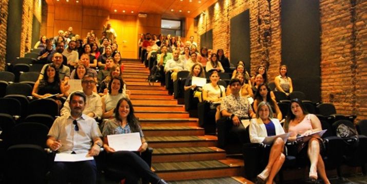 En masiva ceremonia relizada en la Facultad de Arquitectura y Urbanismo, la Dirección de Gestión y Desarrollo de Personas reconoció los nuevos aprendizajes y logros de funcionarias y funcionarios que aprobaron diplomas de especialización y el programa de inglés durante el año 2023.