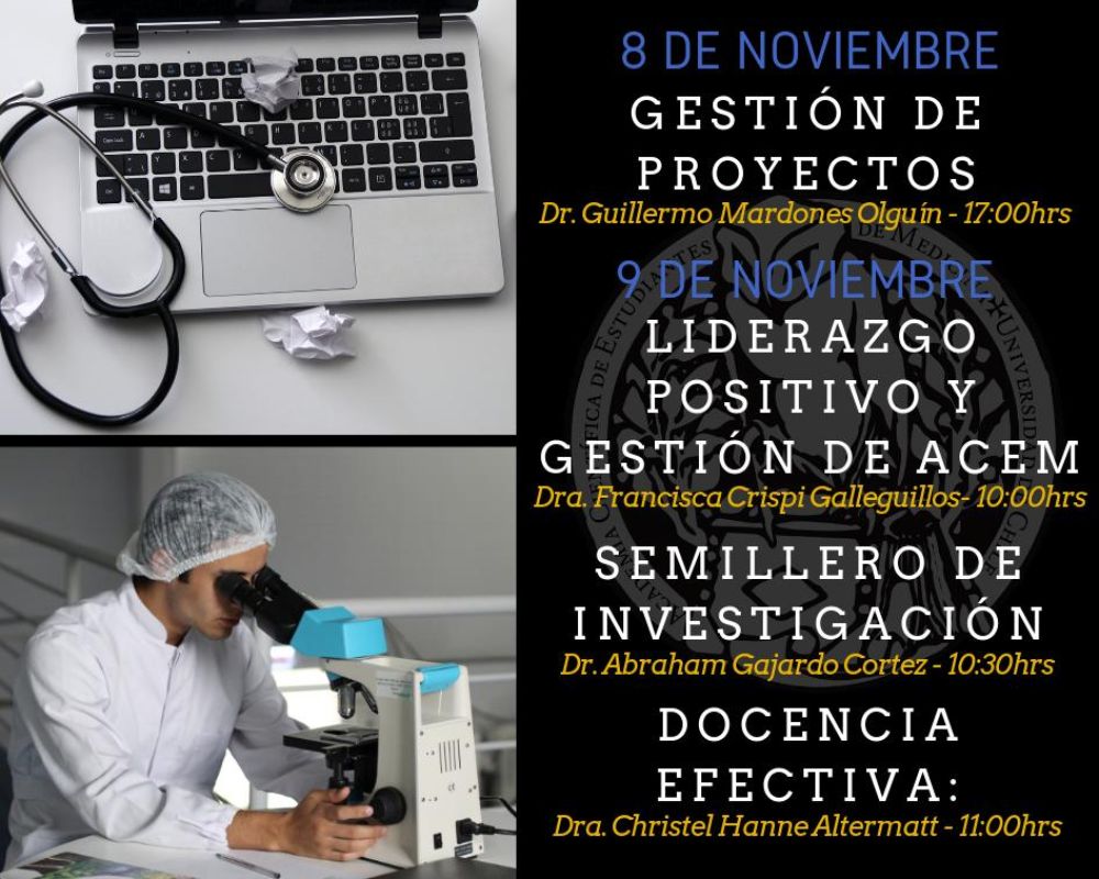 En particular, destaca que en esa misma fecha iniciarán la conmemoración de los 35 años de la ACEM con un curso gratuito a realizarse el 8, 9 y 16 de noviembre en el salón Lorenzo Sazie, el cual abarcará temas como gestión de proyectos, que dictará el doctor Guillermo Mardones; liderazgo efectivo y gestión de ACEM, por parte de la doctora Francisca Crispi; informática médica, a cargo del CENS; semillero de investigación, por el doctor Abraham Gajardo, y docencia efectiva, a cargo de la doctora Christel Hanne. La jornada final contará con un panel en el tema de “La Mujer y la Ciencia”, en el que se presentarán las doctoras Jimena Sierralta, Cecilia Hidalgo y Emilia Sanhueza. “Tenemos 70 cupos, para lo cual tienen que inscribirse; queremos tentar a todos los que quieran ser parte de la academia”, puntualiza Ximena, añadiendo que enviaron invitaciones a miembros de las respectivas academias de las universidades Católica, de Talca y de Concepción, entre otras, “para estimular futuras redes”.