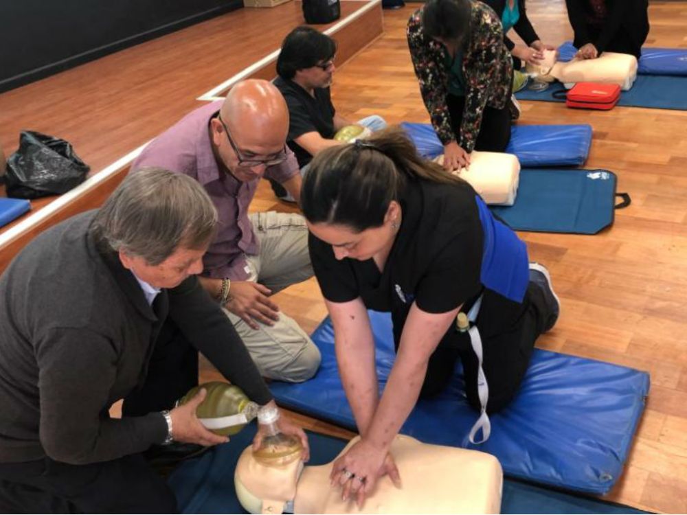 La capacitación de los 30 funcionarios inscritos voluntariamente se realizó mediante un taller teórico y práctico –“similar al que ofrecemos a los alumnos de pregrado”- de tres días, tanto de resucitación cardiopulmonar como de manejo del paciente con obstrucción de vía aérea alta, quienes posteriormente fueron evaluados. Para ello utilizaron simuladores y equipos desfibriladores docentes pertenecientes al CHC, permitiendo así la puesta en práctica de las habilidades. “Fue una buena instancia de aprendizaje, pero también un espacio para conocerse e informarse de experiencias que tuvieron lugar en el pasado y para las cuales queremos estar preparados”, añadió el académico.