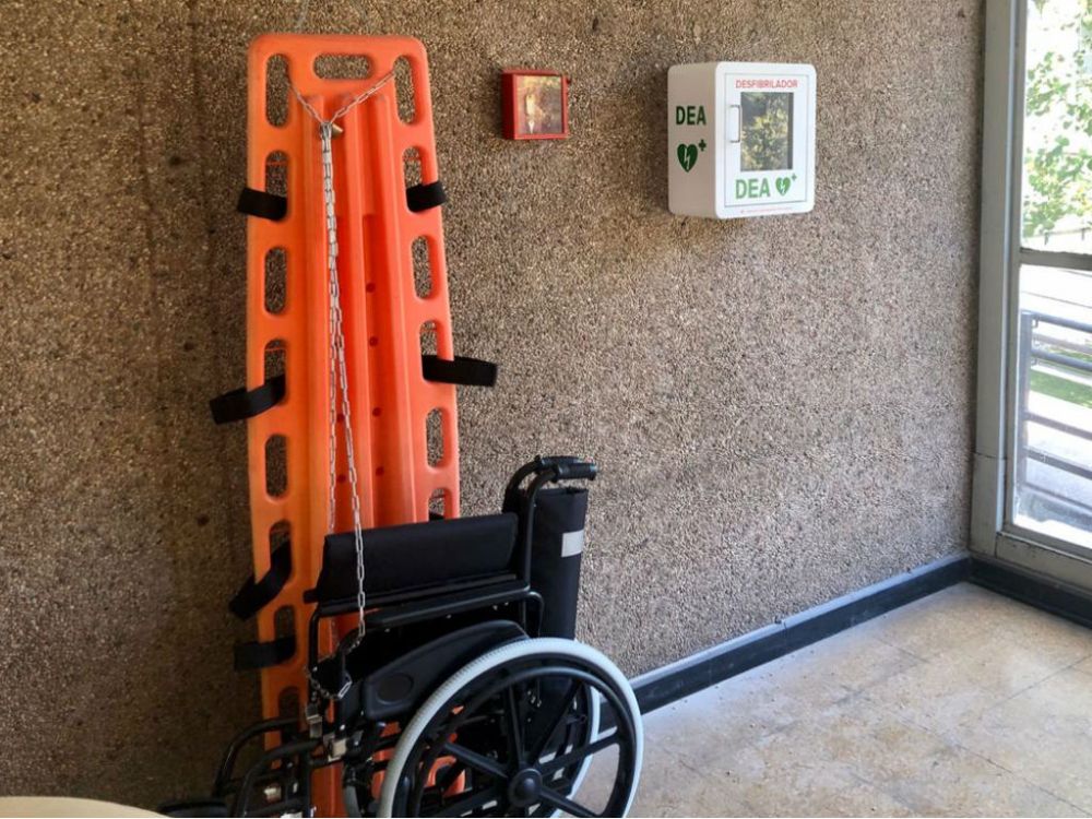 El desfibrilador externo automático, que compraron con recursos propios del chc, está ubicado en el hall de acceso al edificio docente de Campus Occidente y cuenta con máscara de ventilación para adulto; además, se dispone de una camilla rígida de transporte y una nueva silla de ruedas. “El desfibrilador es de los más modernos, pues va indicando mediante voz y paso a paso el proceso para su adecuada puesta en marcha. No es algo demasiado difícil de hacer, pero hay que estar entrenado para su uso y así salvar vidas”.