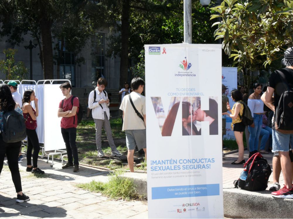 En la oportunidad, y coordinados por la profesora Loreto Villanueva, se abrieron a público en el sector aledaño a los jardines de la fachada del Campus Norte de nuestro plantel una serie de stands informativos acerca de prevención de infecciones de transmisión sexual, métodos anticonceptivos y otros, paralelamente a los espacios dispuestos para la inscripción y toma de muestras para el examen rápido de VIH, así como para la entrega de resultados.