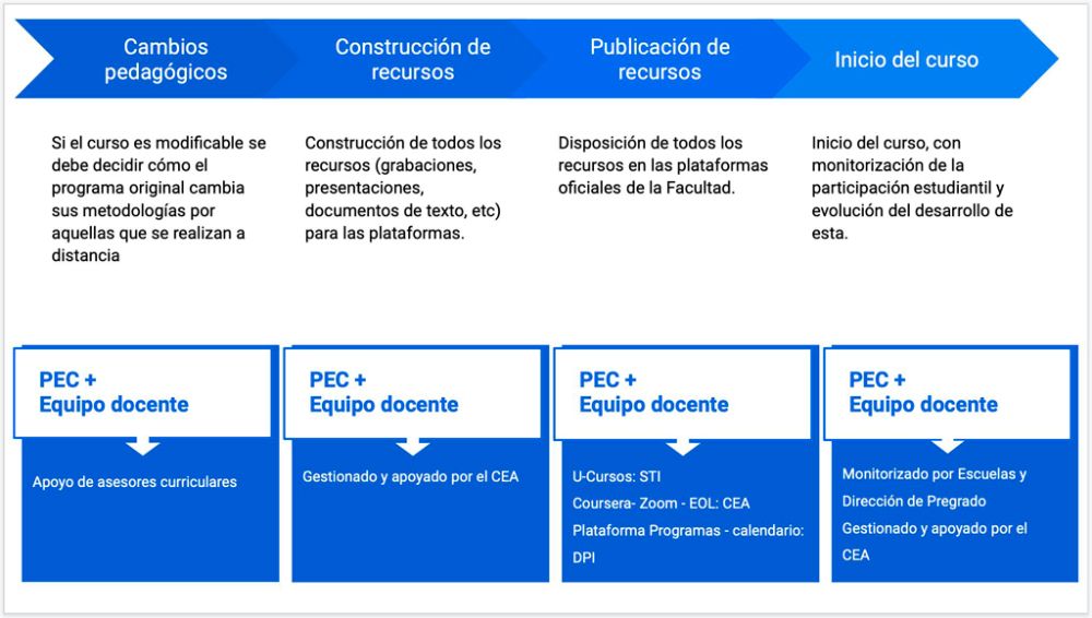 La Dirección de Pregrado, las Escuelas y sus respectivos PEC han trabajado para priorizar y clasificar los cursos de acuerdo a la posibilidad para su traspaso a modalidad online.