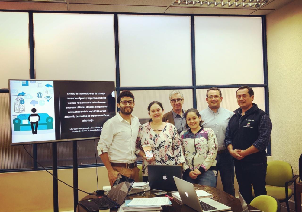 A fines del 2018 el equipo de investigación del Laboratorio de Ergonomía del Departamento de Kinesiología de la Facultad de Medicina se adjudicó uno de los fondos de la Convocatoria de Proyectos de Investigación e Innovación en Prevención de Accidentes y Enfermedades Profesionales de la Superintendencia de Seguridad Social (SUSESO). Su objetivo, señala el profesor Olivares, fue estudiar las condiciones laborales, normativa vigente y aspectos científico-técnicos relevantes del teletrabajo en empresas chilenas afiliadas al Organismo Administrador de la Ley N° 16.744, para el desarrollo de un modelo de implementación de esta modalidad, y con ello poder entregar los lineamientos a las empresas nacionales que, hasta ese año, carecían de un marco legal que los guiara en este proceso.