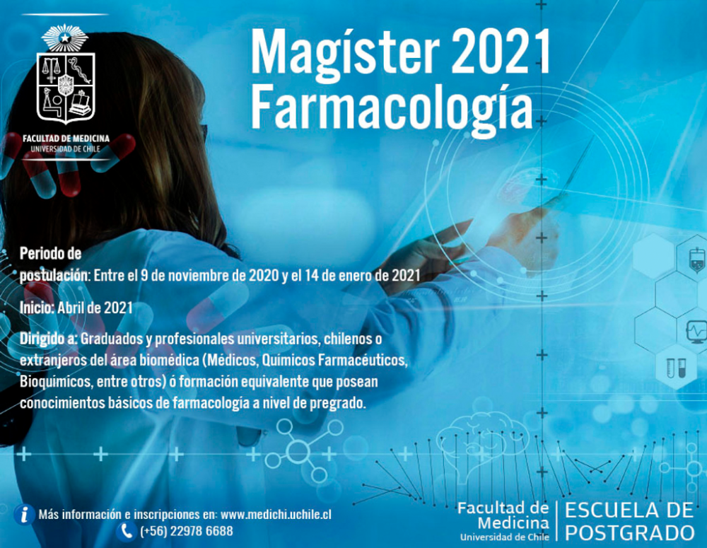 Por último, la directora de la Escuela de Posgrado señala que la actual situación sanitaria ha puesto en evidencia la necesidad de contar con profesionales biomédicos con este tipo de formación, que puedan participar y liderar procesos vinculados a la generación y pruebas de nuevos fármacos, así como nuevos métodos diagnósticos y terapéuticos. “Cursar este Programa de Magister en nuestra Facultad ofrece una oportunidad única para los recién egresados como es la obtención del grado académico que les permitirá desempeñarse como académico, investigador, profesional de servicios clínicos, consultor de entidades estatales o privadas sobre temas del área farmacéutica y de salud pública. Y, además, constituye un importante antecedente que es valorado al momento de postular a un programa de especialidad médica”.