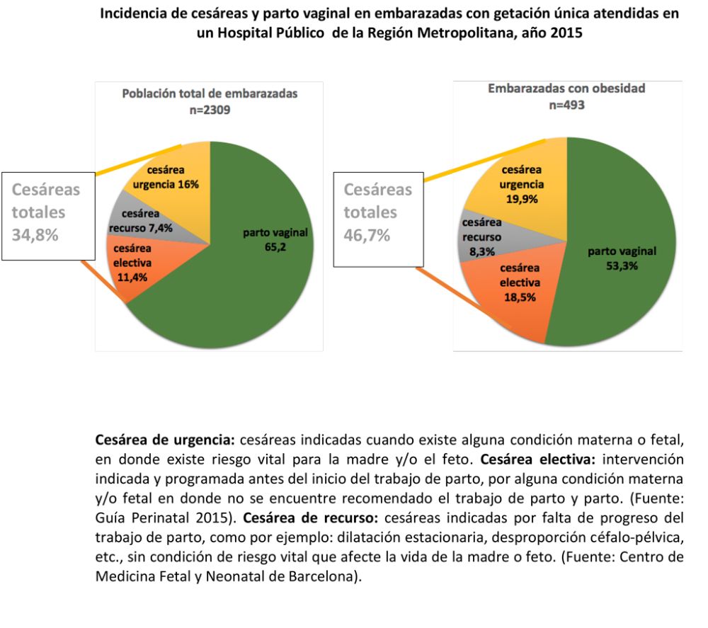 A ello, la profesora Carroza agrega el siguiente dato “las gestantes que presentaron obesidad pregestacional, sólo por el hecho de eso, tuvieron casi dos veces más riesgo de presentar una cesárea electiva. Riesgo que tiende a disminuir levemente al ajustarlo por otras variables. Ahí se puede analizar si fue una cesárea electiva por su condición de obesidad y además, tenía otras condiciones de riesgo, o solo por el hecho de encontrarse con obesidad”.