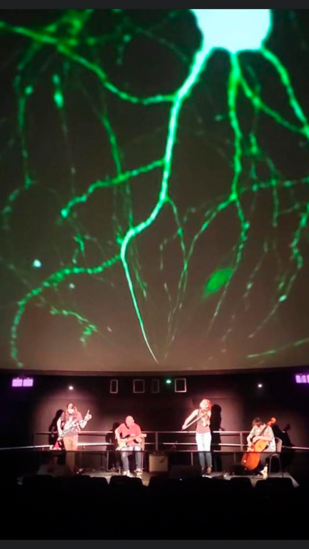 El concierto audiovisual, denominado “Neuroplasticidad e Improvisación musical”, se configuró como una propuesta artística y científica que nace de la voluntad de experimentar nuevos caminos audiovisuales ligados a la ciencia, en el que los cuatro músicos tocaron al compás de estímulos neuronales, presentación que se complementó con una proyección de imágenes relacionadas a la neuroplasticidad, creadas por el también compositor de la obra Sebastián Vidal. Así, interpretaron las piezas denominadas “Neuroplástica I”, “Neuroplástica II” y “Aplysia”
