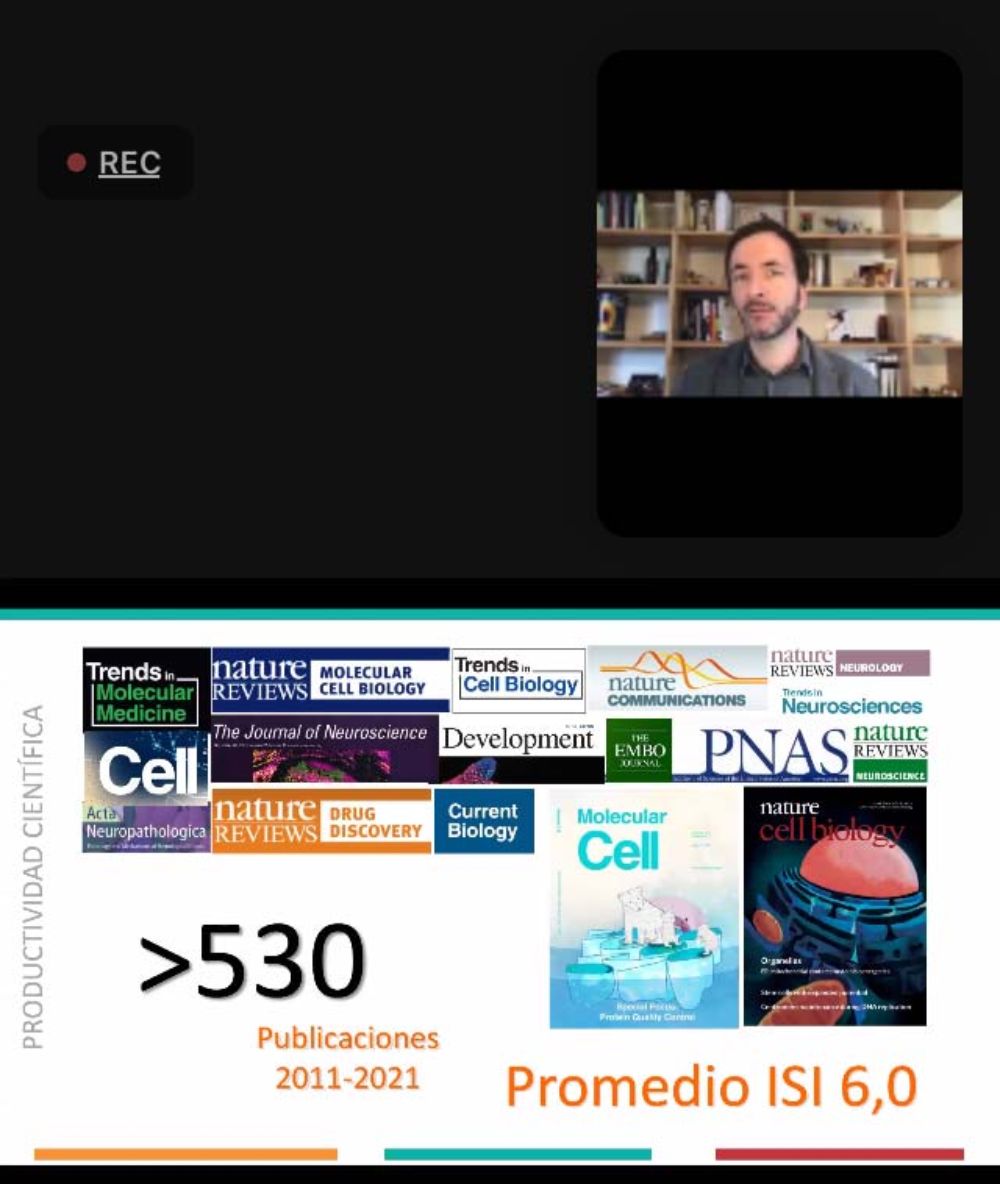 Por último, el doctor Claudio Hetz hizo una presentación recopilatoria de todos los avances alcanzados por el equipo del BNI, tales como la formación de 617 profesionales jóvenes provenientes de Chile y de países como Alemania, Estados Unidos, Australia, Portugal, España, Italia, Brasil, Canadá, Suiza, Suecia, Inglaterra, Uruguay, China, Japón y México; 536 estudios publicados en revistas especializadas, algunas de muy alto impacto, como Nature. Además, abrió un área de innovación en la que han desarrollado 18 proyectos en los últimos seis años, los que en su mayoría corresponden a soluciones tecnológicas para empresas y que les han permitido levantar un capital de 1,7 millones de dólares. Por otro lado, han generado nueve solicitudes de patentes gracias al trabajo colaborativo con la oficina de innovación de la Universidad de Chile, entre las que destaca el licenciamiento de una tecnología en el área de terapia génica contra enfermedades neurodegenerativas, transferida a la compañía biotecnológica belga Handl Therapeutics y fusionada a la compañía farmacéutica UCB, lo cual permitirá realizar estudios clínicos hasta fase III. Y en materia de educación recordó que en el 2015 establecieron una alianza con la plataforma educativa Biointeractive del Instituto Howard Hughes Medical Institute (HHMI), para desarrollar “Mentes Transformadoras”, iniciativa para apoyar la enseñanza de ciencias en el aula escolar; además, destacó iniciativas como el Domo Cerebro y “Neurozona”, creado el año 2017 y habilitado en el Museo Interactivo Mirador (MIM).