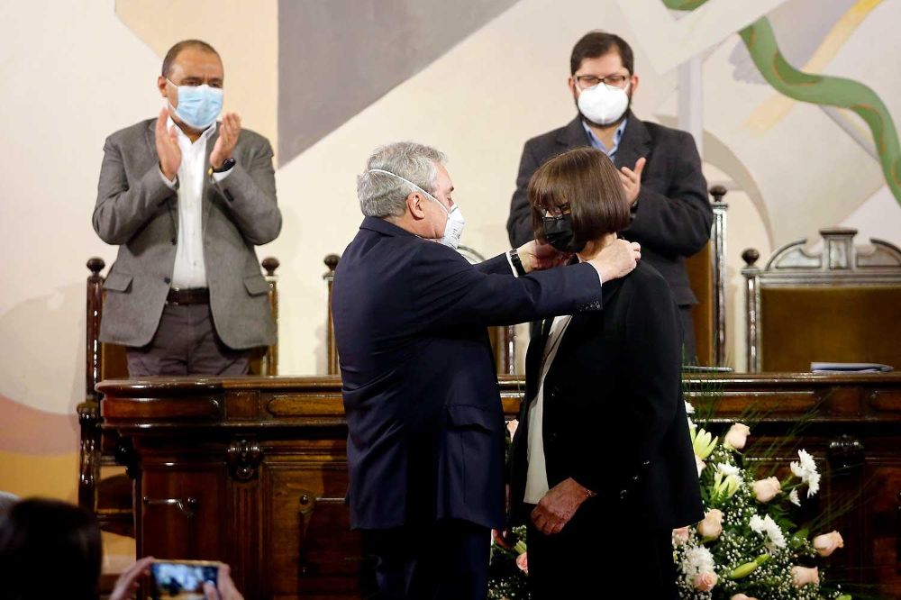 La ceremonia, desarrollada en el Salón de Honor de la Casa Central, contó con la participación del Presidente de la República y patrono de la Universidad de Chile, Gabriel Boric; del ministro de Educación, Marco Antonio Ávila; la ministra del Interior y Seguridad Pública, Izkia Siches; la ministra de Defensa Nacional, Maya Fernández; la ministra de Justicia y Derechos Humanos, Marcela Ríos; y el ex Presidente, Ricardo Lagos Escobar, entre muchas otras autoridades universitarias y de gobierno. En el marco de este traspaso de mando, la Profesora Titular de la Facultad de Medicina recibió la medalla que la inviste como la Rectora 31 de la institución, cerrando el período de ocho años que previamente encabezó el profesor Ennio Vivaldi.