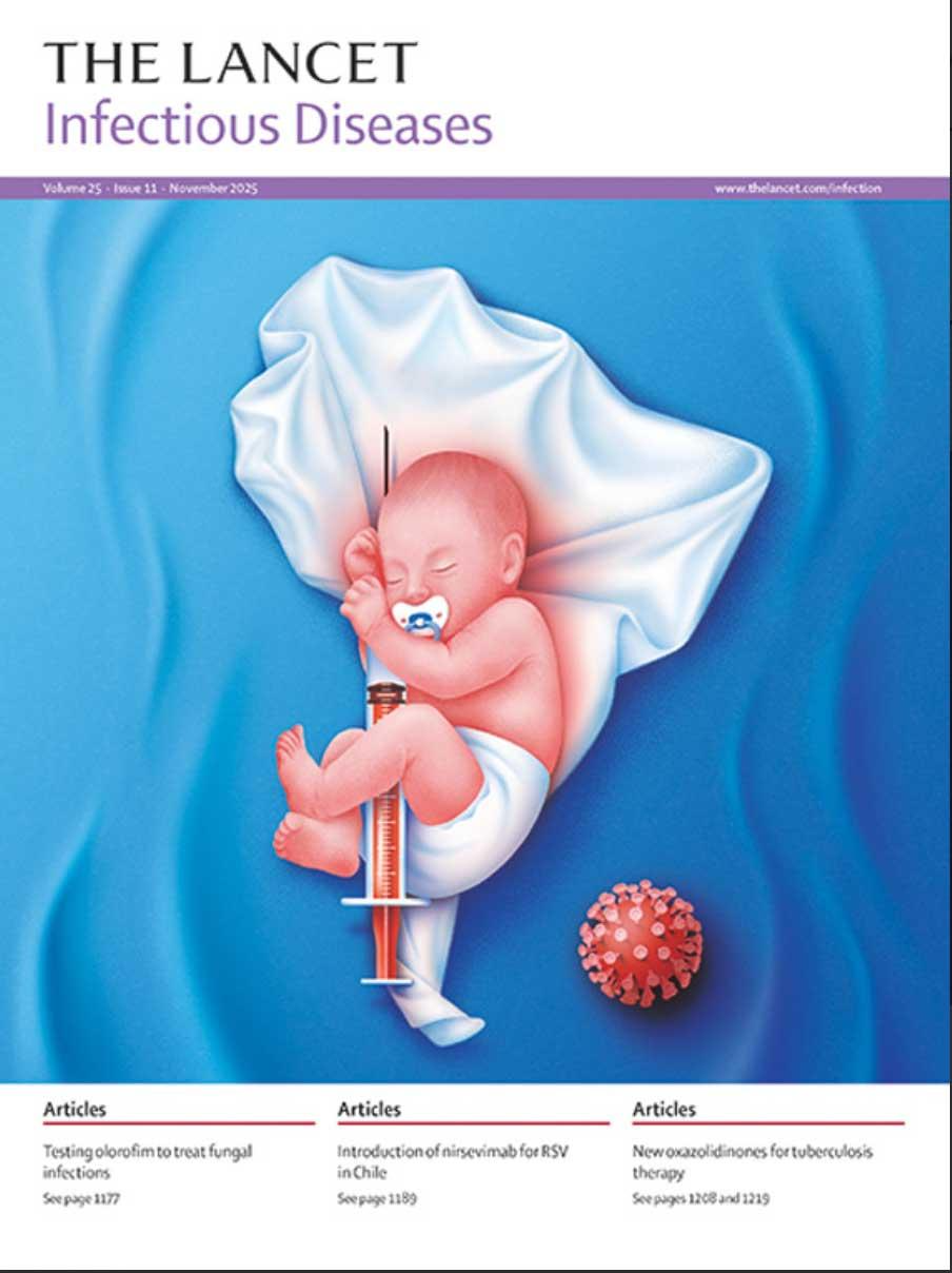 De esta forma, la revista destaca el trabajo realizado por el doctor Juan Pablo Torres, pediatra infectólogo de la Facultad de Medicina y vicedecano del plantel, junto al doctor Miguel O’Ryan; los profesores Leonardo Basso, Denis Sauré, Marcel Goic y Charles Thaves, de Ingeniería Industrial de la Universidad de Chile y del Instituto Sistemas Complejos de Ingeniería, ISCI, y Jorge Pacheco, jefe del Departamento de Estadísticas e Información en Salud, DEIS, del Ministerio de Salud, el cual revela que en 2024 las hospitalizaciones pediátricas por VRS se redujeron en un 80% gracias a la estrategia de inmunización con Nirsevimab implementada por el Ministerio de Salud, logrando que al término de la campaña de invierno de dicho año no hubiera ningún recién nacido fallecido por esta infección respiratoria.