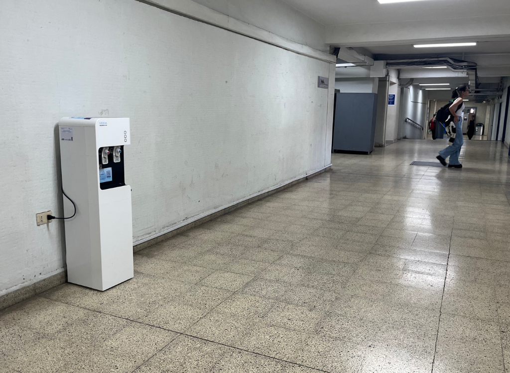 Brenda Recabarren señaló que estas estaciones son complementarias y responden a otras necesidades de uso: “Las estaciones de llenado son más accesibles para recargar botellas sin agacharse, van adosadas a la pared y quedarán en propiedad de la facultad. Los 19 dispensadores, en cambio, están en arriendo porque es más conveniente económicamente dada la mantención”.