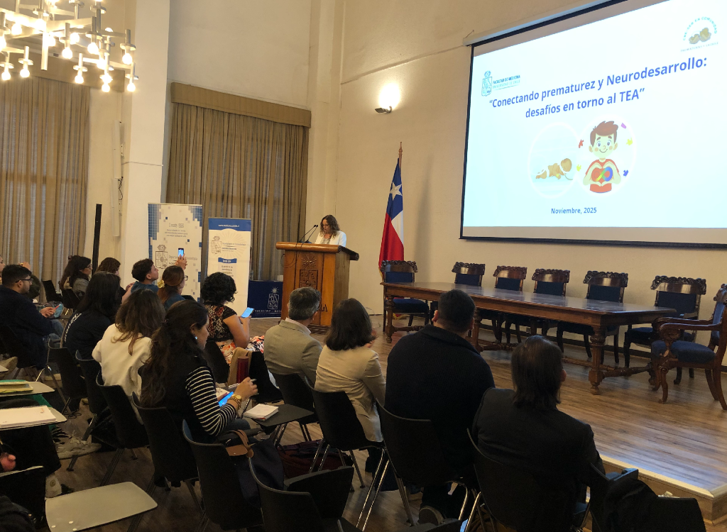 Finalmente, la profesora Alejandra Marín, organizadora del encuentro, señaló que “esta jornada se enmarca en el proyecto de extensión de abordaje integral del trastorno del espectro autista en prematuras y prematuras, potenciando el desarrollo infantil con estrategias para la familia y los profesionales de apoyo, en el cual participan profesoras y académicas de los departamentos de Fonoadiología, Terapia Educacional y Kinesiología, junto a un grupo de nuestros muy motivados estudiantes. Desde hace unos años, hemos conformado un equipo multidisciplinario comprometido con aportar en el desarrollo integral de niños y niñas, en especial con los recién nacidos prematuros; en esta oportunidad, nos hemos propuesto abordar una de las posibles dificultades que enfrentan luego de haber superado el gran impacto de haber nacido antes de término, como es el trastorno del espectro autista; nuestra motivación surge del deseo de apoyar a estos niños y sus familias, pues entendemos nuestro rol como profesores y académicos de la Universidad de Chile, contribuyendo al objetivo sanitario de la década 2030 en el eje del funcionamiento y la discapacidad, promoviendo el desarrollo integral y la calidad de vida de las personas en el aspecto autista y sus familias”.