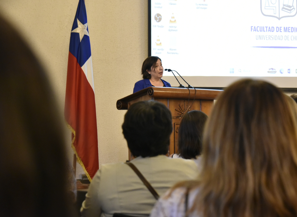 La jornada, organizada por la Dirección de Pregrado a través de su Unidad de Egresados y Egresadas — Alumni, buscó impulsar la creación de un espacio de reencuentro y colaboración permanente entre la FMUCH y su comunidad de egresados. Así lo expresó la profesora Marcela Díaz en sus palabras de bienvenida, enfatizando la importancia de los egresados para la vida institucional: “Sentimos una profunda satisfacción al recibirles en este hito y hoy nos reunimos para reconocer y reivindicar uno de los componentes esenciales de la triada que da vida a nuestra universidad”, señaló, agregando que “a veces, en la intensidad de la academia y la gestión universitaria, olvidamos que la universidad no termina en el aula”.