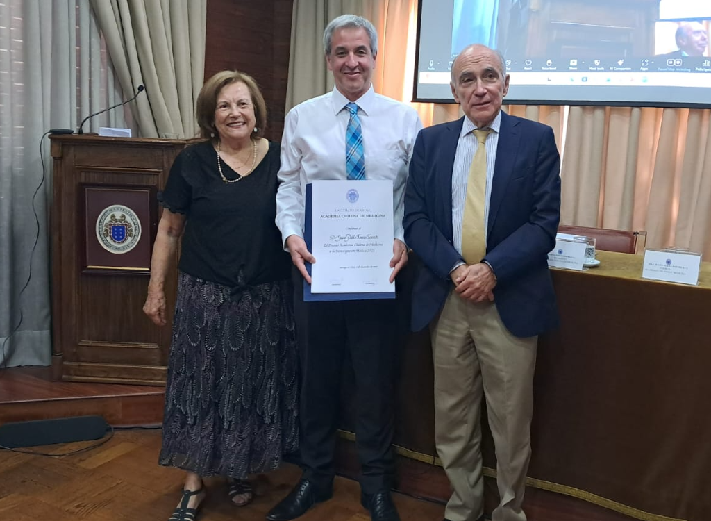 Luego de recibir su distinción, el doctor Juan Pablo Torres dijo que “es una tremenda alegría y un honor poder recibir un premio de parte de la Academia Chilena Medicina. Y la verdad es que, al reconocer una línea de investigación, se reconoce también a las personas y a los académicos por los cuales uno se pudo formar, así como a un tremendo equipo de trabajo también, a colegas con quienes es posible generar la investigación y seguir transmitiendo estos nuevos conocimientos a lo largo de la formación de nuevas generaciones”.